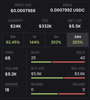 Token byl spuštěn v červnu 2024 a obchoduje se za 154 tisíc dolarů FDV!