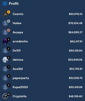 Puede acceder a nuestra tabla de clasificación y ver los 20 mejores PnL y el volumen cada mes, desde febrero.