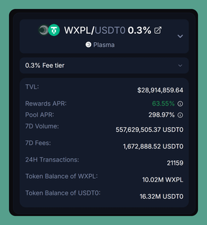 Dapatkan APR hingga 63% dengan menyediakan likuiditas ke kumpulan WXPL/USDT0 pada @Plasma