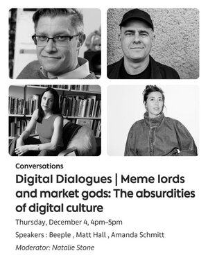 Sarà molto divertente. Beeple dal vivo ‘Everyday’ sul palco principale con Matt, Amanda e Stone. Gratuito e aperto al pubblico. 4 dicembre.