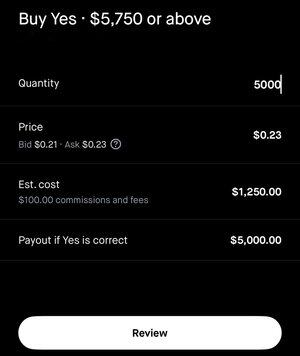 Payout 4:1 se $ETH raggiunge $5750 entro la fine dell'anno su Robinhood.
