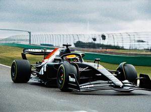 Ripresa cinematografica di una macchina di Formula 1 che sfreccia attraverso il circuito ad alta velocità, la sua carrozzeria nera e arancione che brilla sotto il cielo nuvoloso. La telecamera inizia improvvisamente uno zoom rapido, accorciando la distanza in modo aggressivo mentre la macchina avanza, il rombo del motore che scuote l'inquadratura. Il mosso intensifica attorno alle ruote e alle barriere, enfatizzando la velocità, mentre il focus si affina sul pilota all'interno del cockpit. L'entrata drammatica crea un senso di slancio inarrestabile, trascinando lo spettatore direttamente nel cuore della corsa.