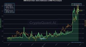 ピーク時のBNB:3.6Mのアクティブアドレスと価格との爆発的な相関関係 「毎日のアクティブアドレスは、BSC エコシステムの健全性を測定し、BNB の次の価格変動を予測するための重要なオンチェーン指標となっています。」 – @CryptoOnchain