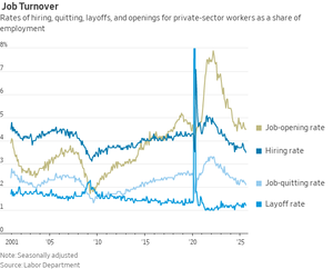 辞め率は2.1%に小幅低下し、サイクルの安値に匹敵した