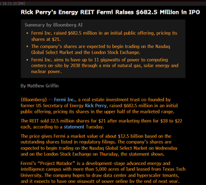 Fermi (FRMI) priset til $21, samlet inn $682,5 millioner, og vil begynne å handle i morgen på Nasdaq og LSE.
