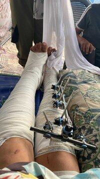 Familien hans trygler om å evakuere ham for behandling, han trenger operasjoner i beina slik at han ikke mister evnen til å gå.