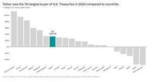 Tether var den 7th største kjøperen av amerikanske statsobligasjoner i 2024, sammenlignet med land 🤯