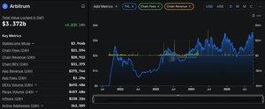 Arbitrums totale DeFi TVL ligger på rundt 3,4 milliarder dollar ifølge @DefiLlama