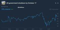 Oddsen for en nedstengning av den amerikanske regjeringen innen onsdag er nå på 72 %.