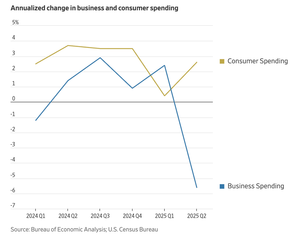 Takket være pres. Trumps tollsatser falt de samlede forretningsutgiftene kraftig i Q2. Den var ned med 5,6 % på årsbasis i reelle termer.