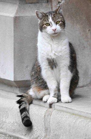 Chief Mouser naar het kabinet. 18 jaar oude tabby. Wonen bij mijn zesde premier. Officieus. Ik ben de media, miaow.