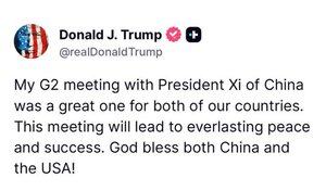 🇺🇸🇨🇳 特朗普剛剛表示他與習近平的會議非常成功,這將為美國和中國帶來持久的和平與成功。 這種確定性對市場是 Bullish 的。